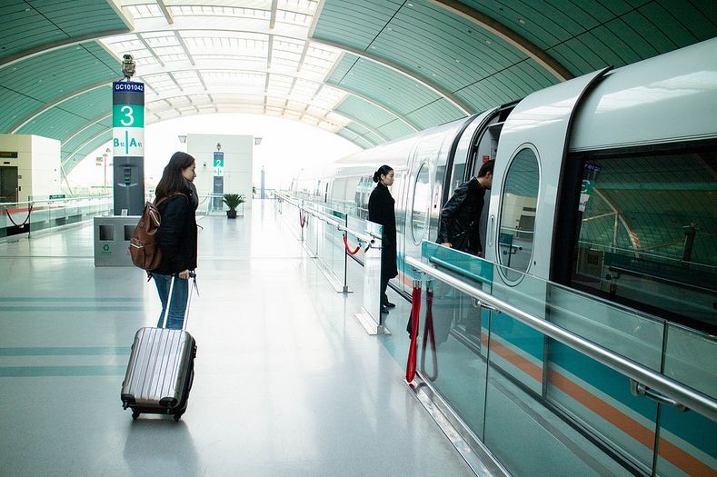 上海磁懸浮列車專線西起上海軌道交通2號線的龍陽路站,東至上海浦...